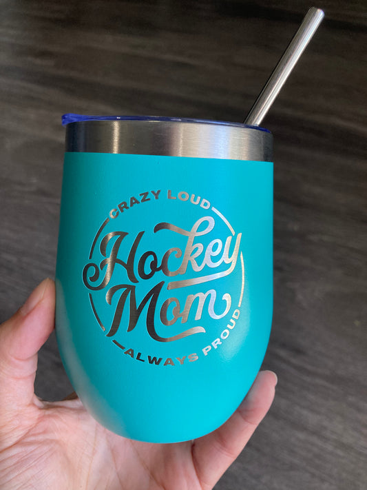 Hockey Mom Wine Cup - Blue