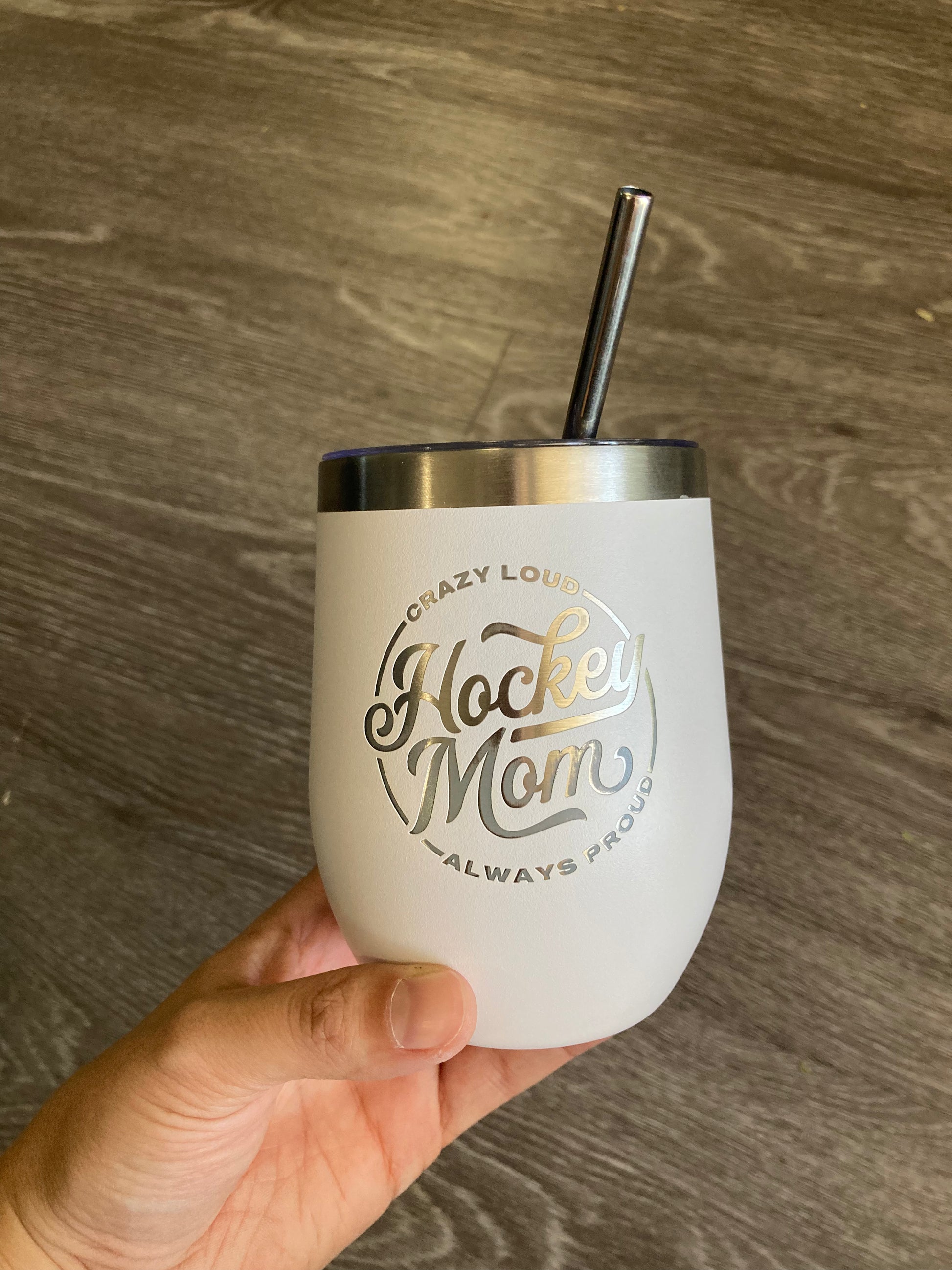Hockey Mom Wine Cup - White